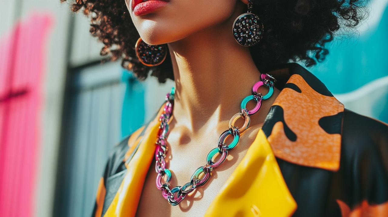 Dans l'univers foisonnant de la mode contemporaine, certains accessoires possèdent ce pouvoir presque magique de métamorphoser instantanément une silhouette. Parmi ces pièces transformatrices, le bijou XXL s'impose comme un véritable outil architectural capable de redéfinir l'allure générale d'une tenue. Au cœur de cette tendance audacieuse, un accessoire se distingue particulièrement : le collier avec ses maillons généreux en matière synthétique colorée, qui conjugue légèreté, originalité et impact visuel spectaculaire.